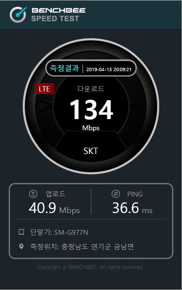 SKT 5G/LTE 속도 테스트 (세종시/대평동)