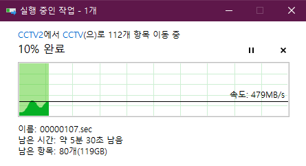 간단하게 CCTV 파일 복사 (쓰기)에서는 479MB/s 정도 나왔으며