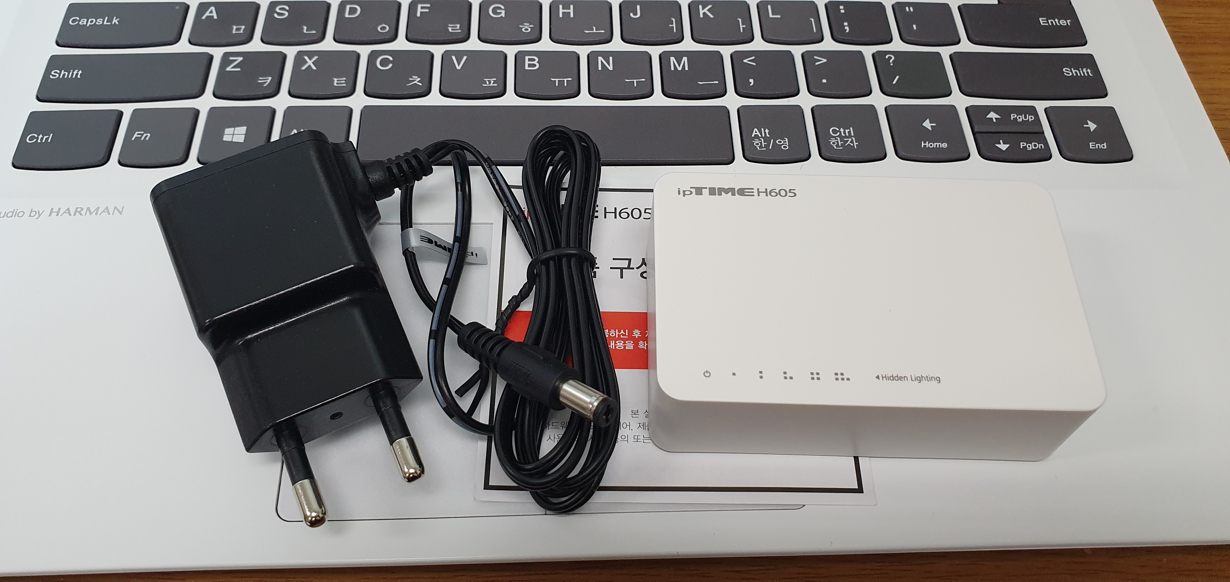 네트워크 구축과정에서 IPTV 2대를 외부IP 할당을 위해 구매한 ipTIME H605 5포트 허브입니다.