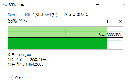 실제 파일전송시 Read 속도는 300MB/s에 근접하였으며