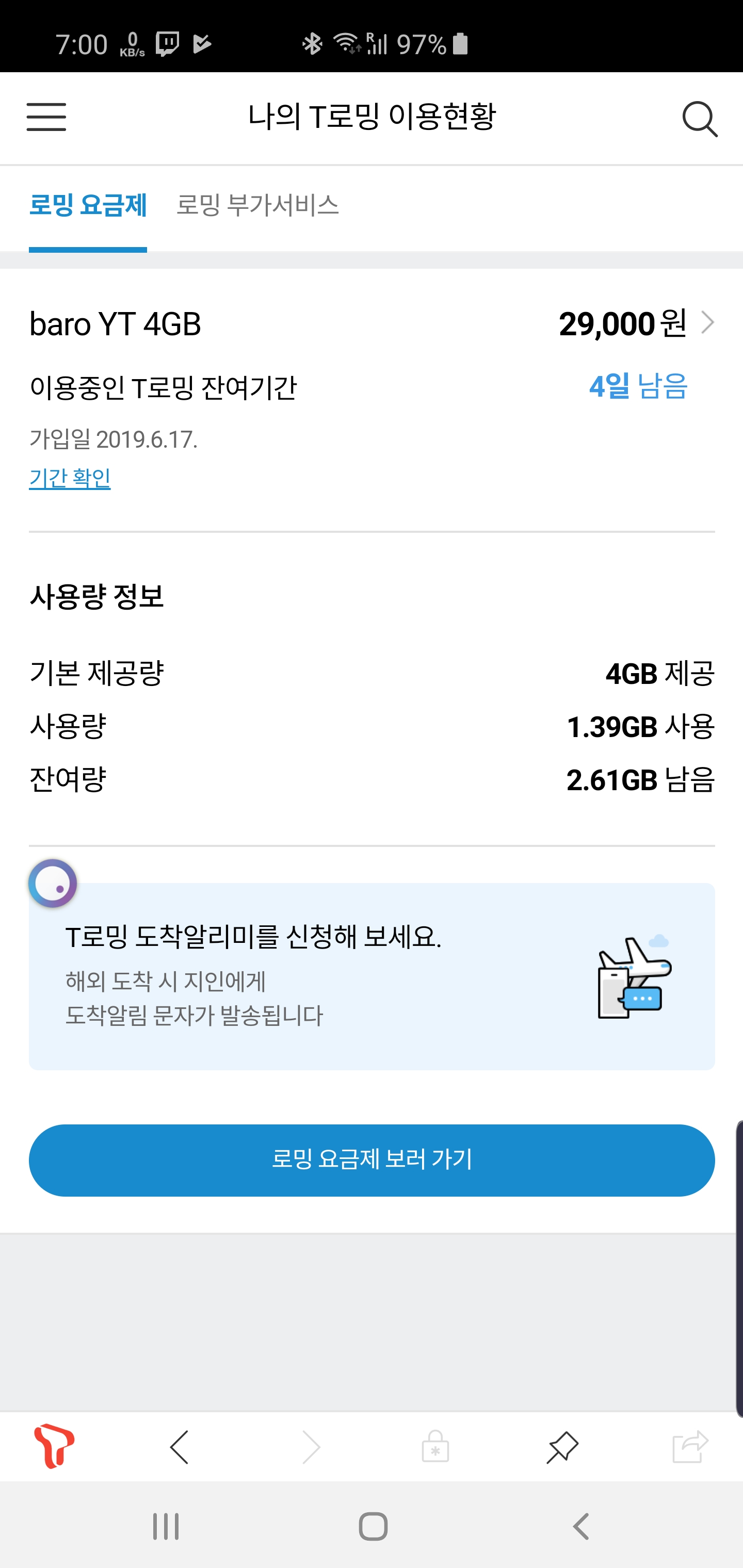 그리고 T전화의 'baro 통화' 서비스를 통해 로밍 상태에서 무료로 전화를 수/발신할 수 있어서