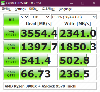 1700 에서는 X470 보드를 조합해도 속도가 어정쩡하게 나왔는데 이번 3900X는 정말 잘나오네요.