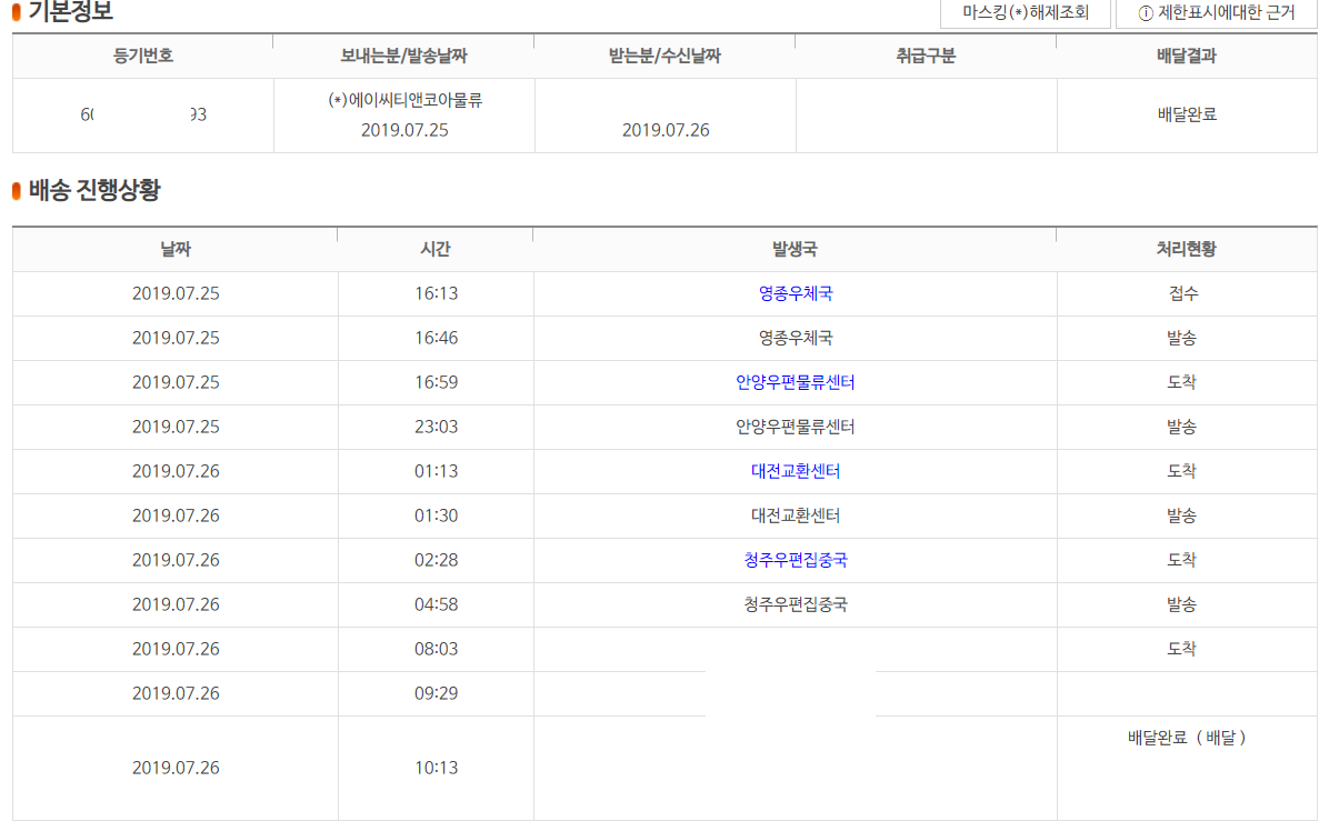 운송장 번호가 6으로 시작하는것으로 보아 국제등기로 취급되지 않고 국내에선 택배로 취급이 되는것 같고.