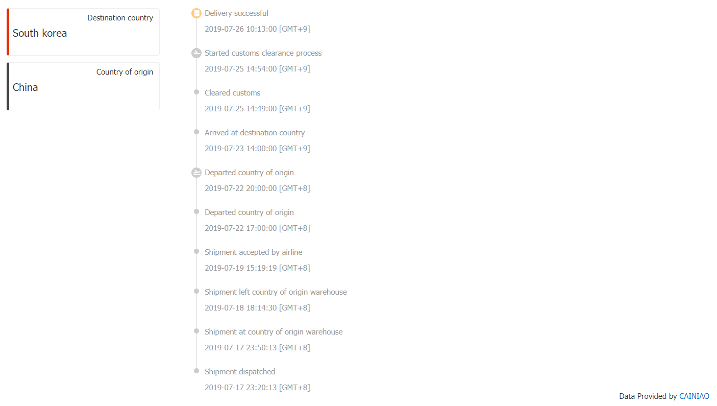 인천항에서 한성라인(주) 선박을 통해 국내로 정식 통관/ 우체국으로 인계 후 배달완료 되었네요.