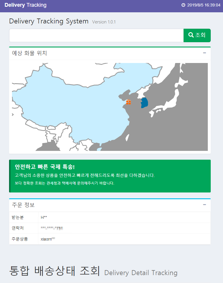 예상 화물위치와 통관조회, 국내 배송조회 까지 함께 이뤄집니다.