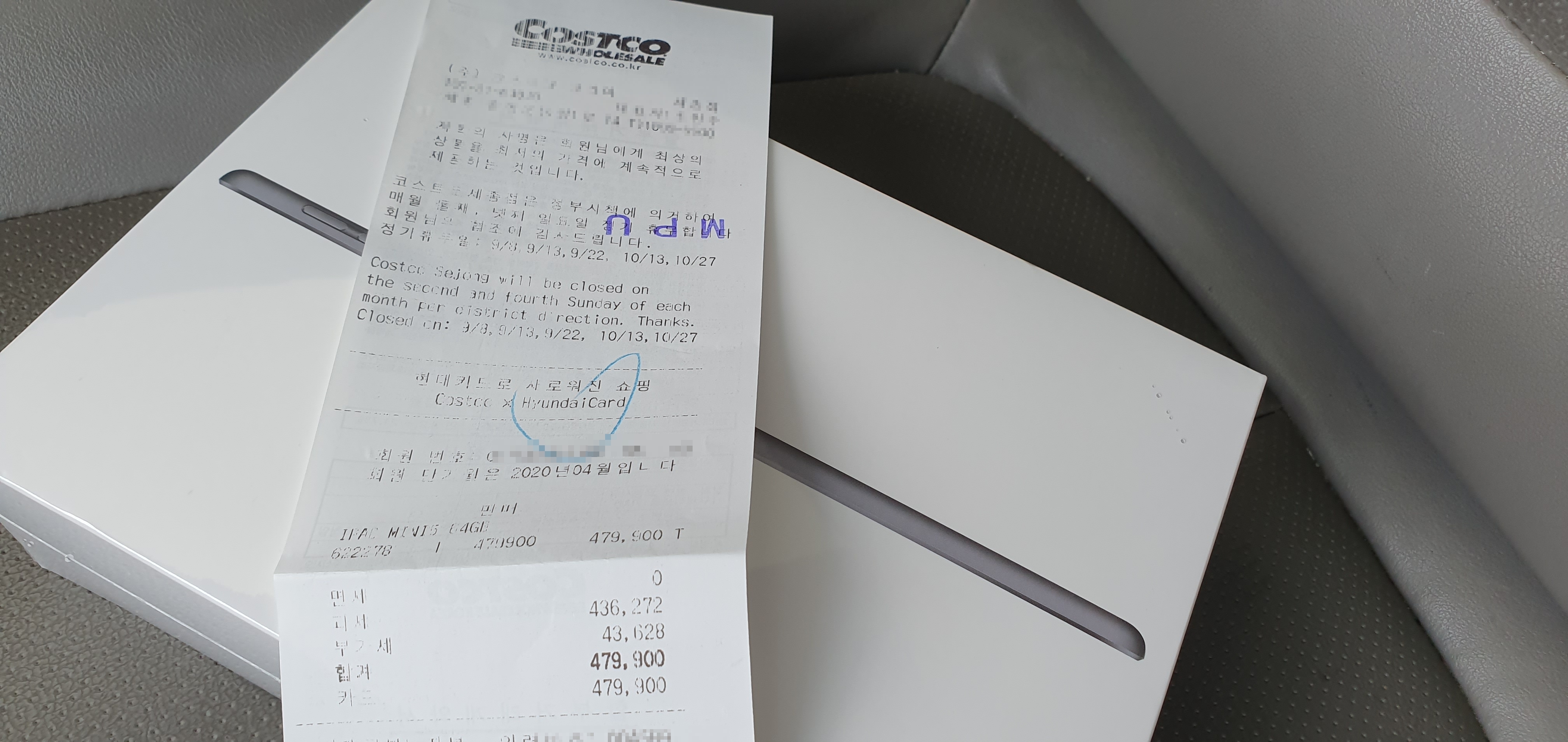 추석 연휴 전날 코스트코에 방문하여 iPad Mini 5th 제품을 구매했습니다.