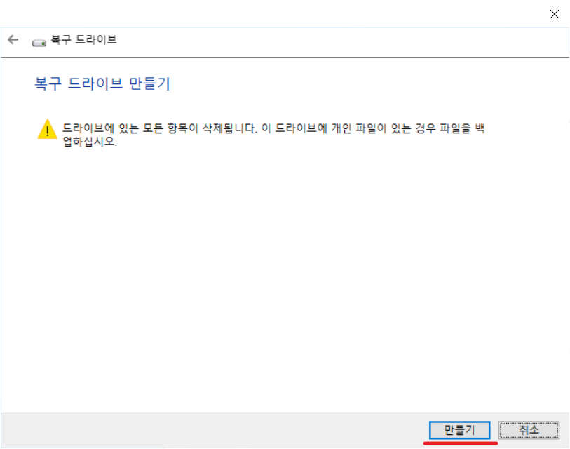 이를 부팅하기 위해 윈도우 탐색기에서 '복구 드라이브'를 검색하여 프로그램을 실행합니다.