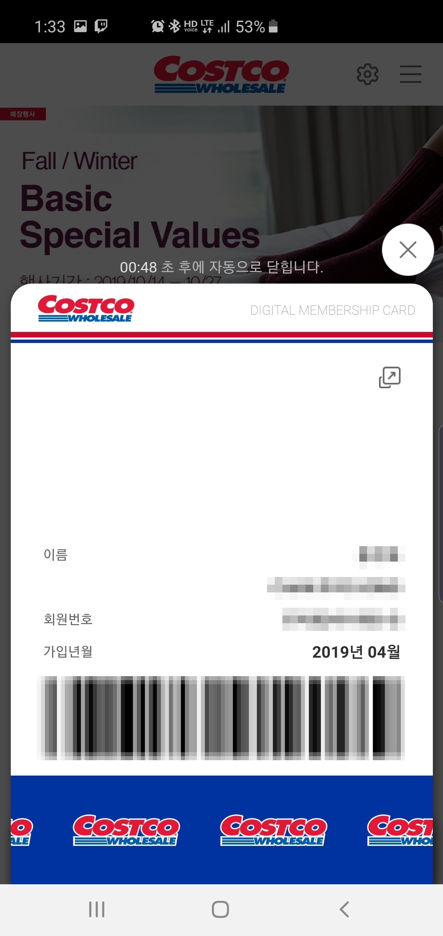 지난주 코스트코 매장을 방문하였다가 디지털 멤버십 카드 안내를 봤습니다.