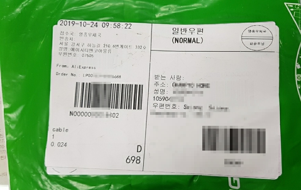 10월 22일에 알리익스프레스를 통해 물건을 구매하면서 Cainiao Expedited Economy으로 배송받았습니다.