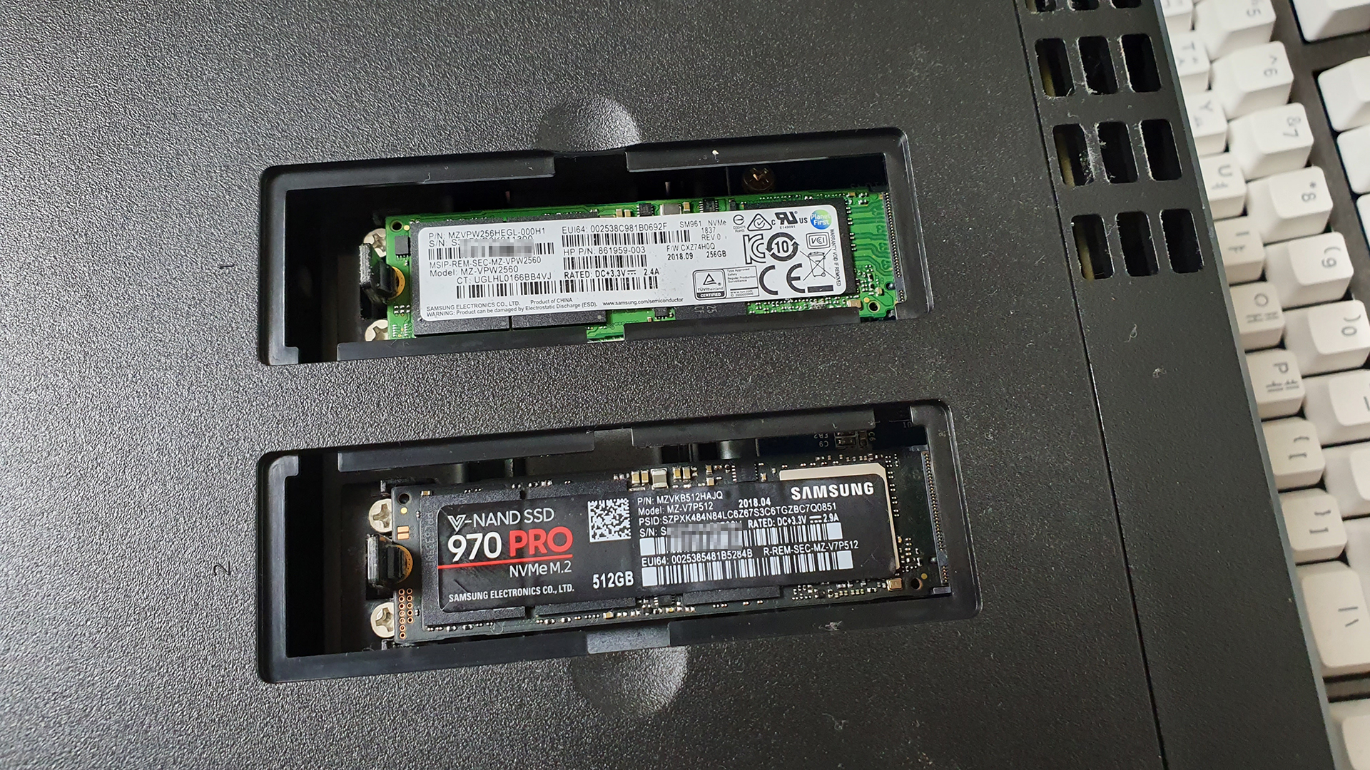 메인 데스크톱에서 사용하던 970 PRO 512GB와 SM961 256GB 2개 모두 MLC 제품이네요.