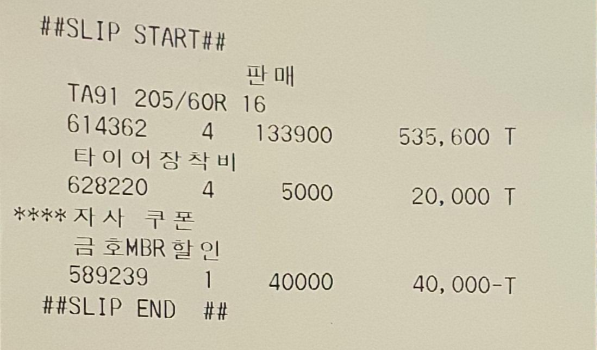 코스트코 세종점에서 타이어 4본을 교체했습니다.