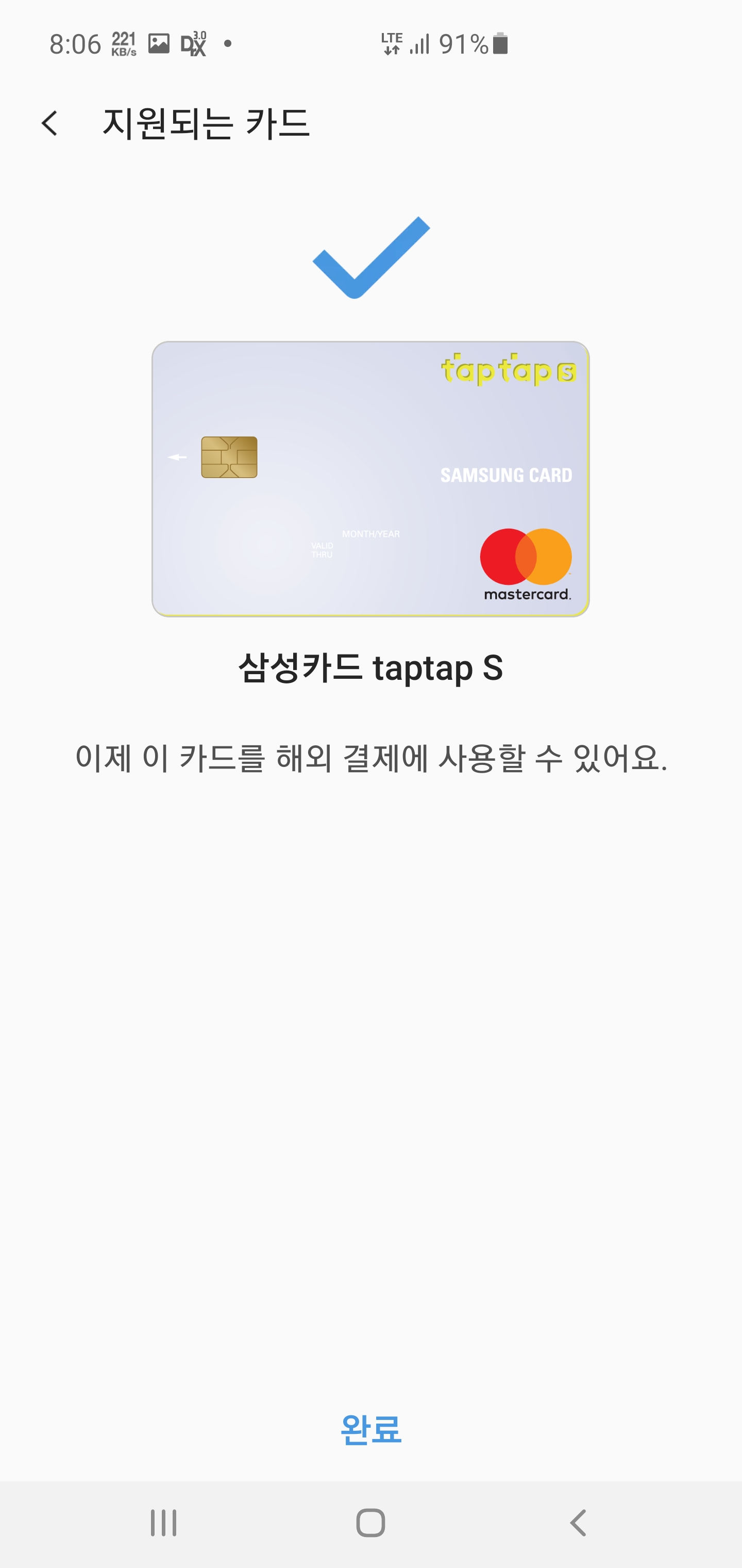 지금은 삼성카드에서 발행한 마스터카드만 등록 가능하며 차후 다른 카드사는 확대될 예정입니다.