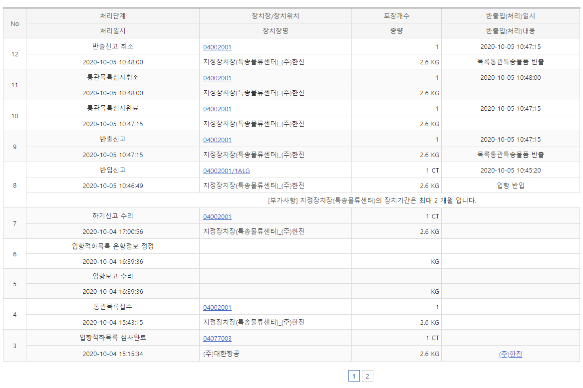 관세사에 문의하니 X-RAY 세관 지정건으로 목록통관이 취소되었으며 1-2일 추가 소요된다고 합니다.