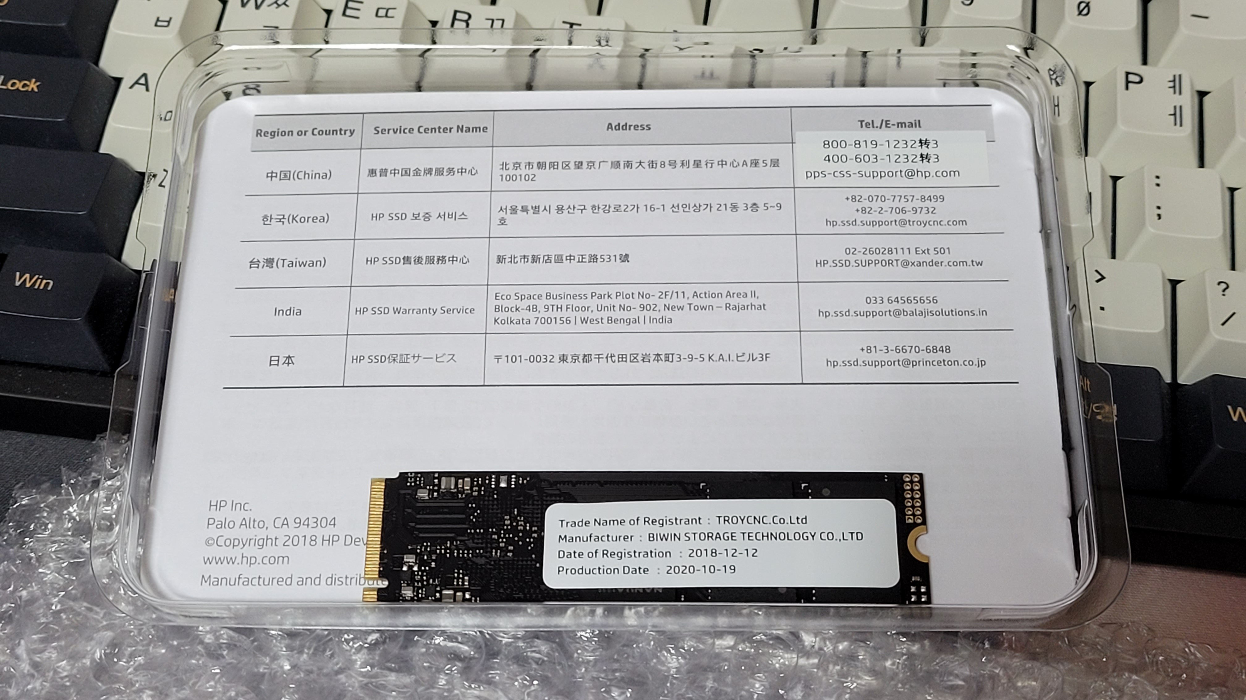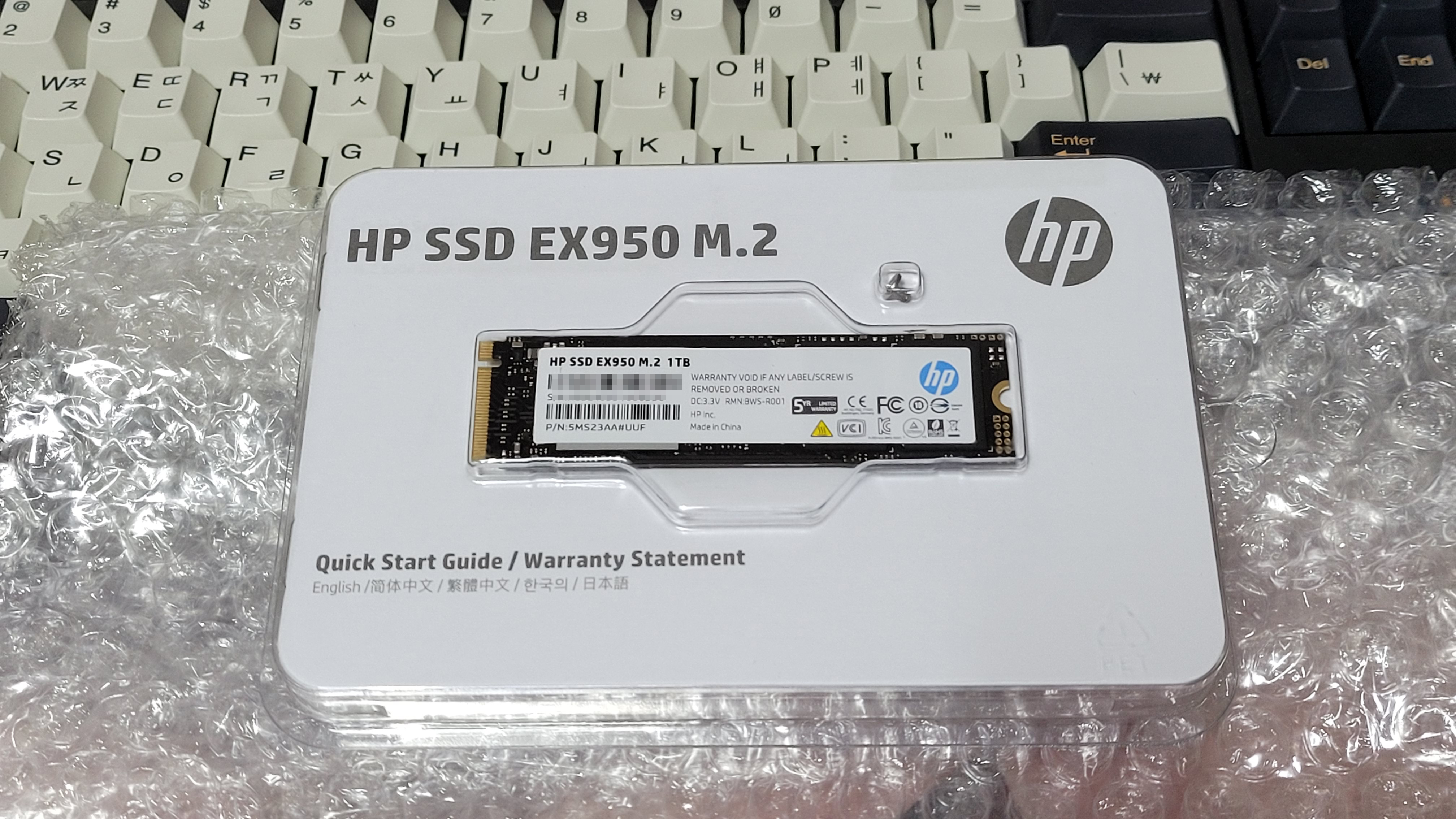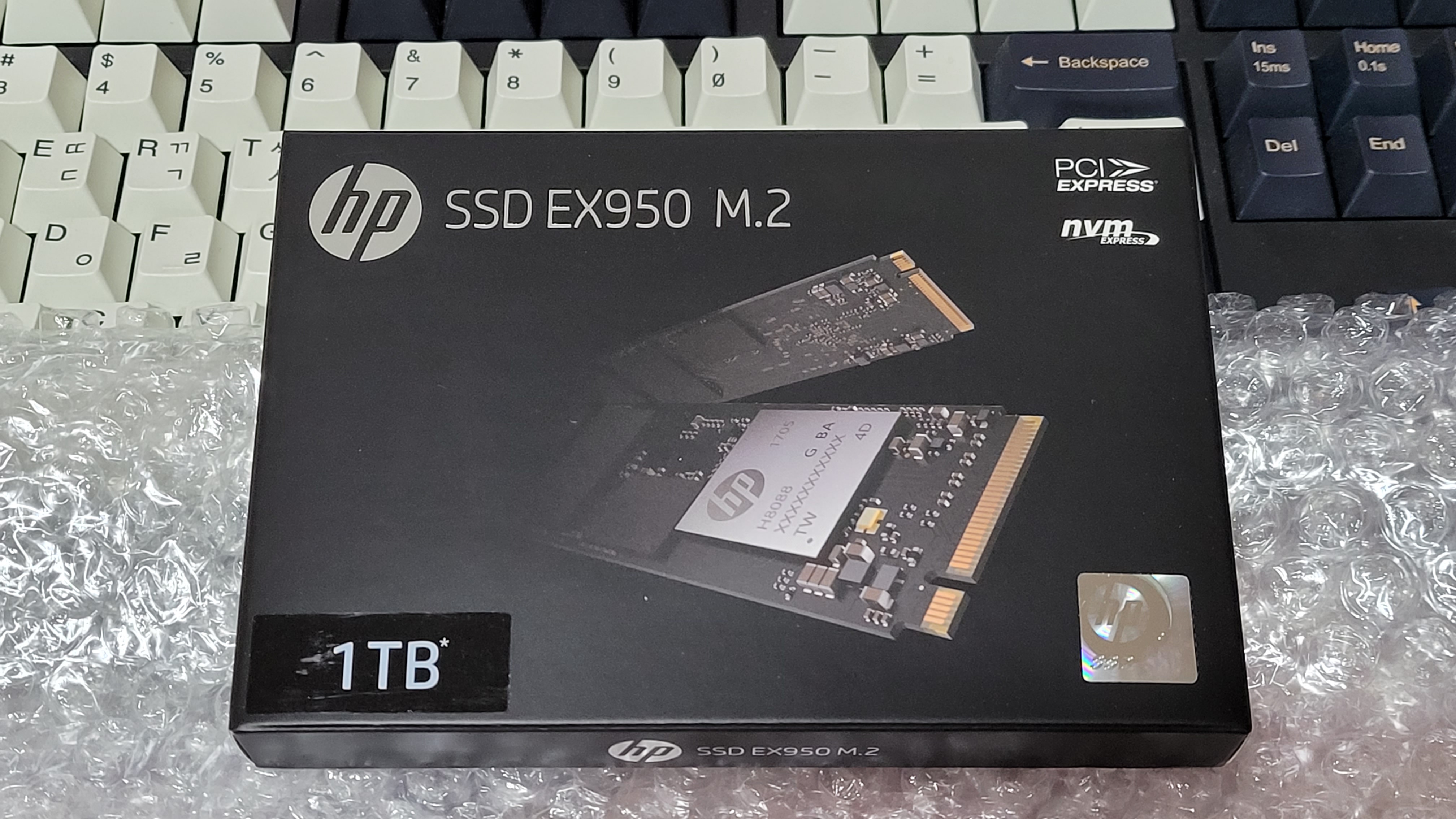 이번 빅스마일데이때 삼성카드 추가할인을 적용하여 12.7만원에 구매한 HP EX950 M.2 NVME SSD 1TB 입니다.