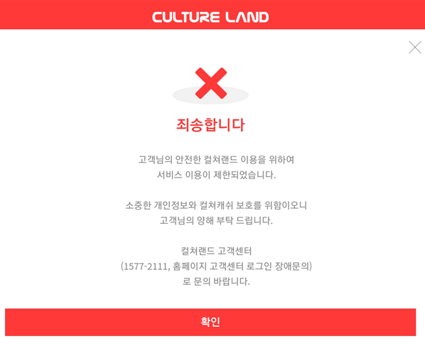 컬처랜드의 고객보호서비스는 좋지만 정상적인 이용자들의 불편함은 생각하지 않는 것 같네요.