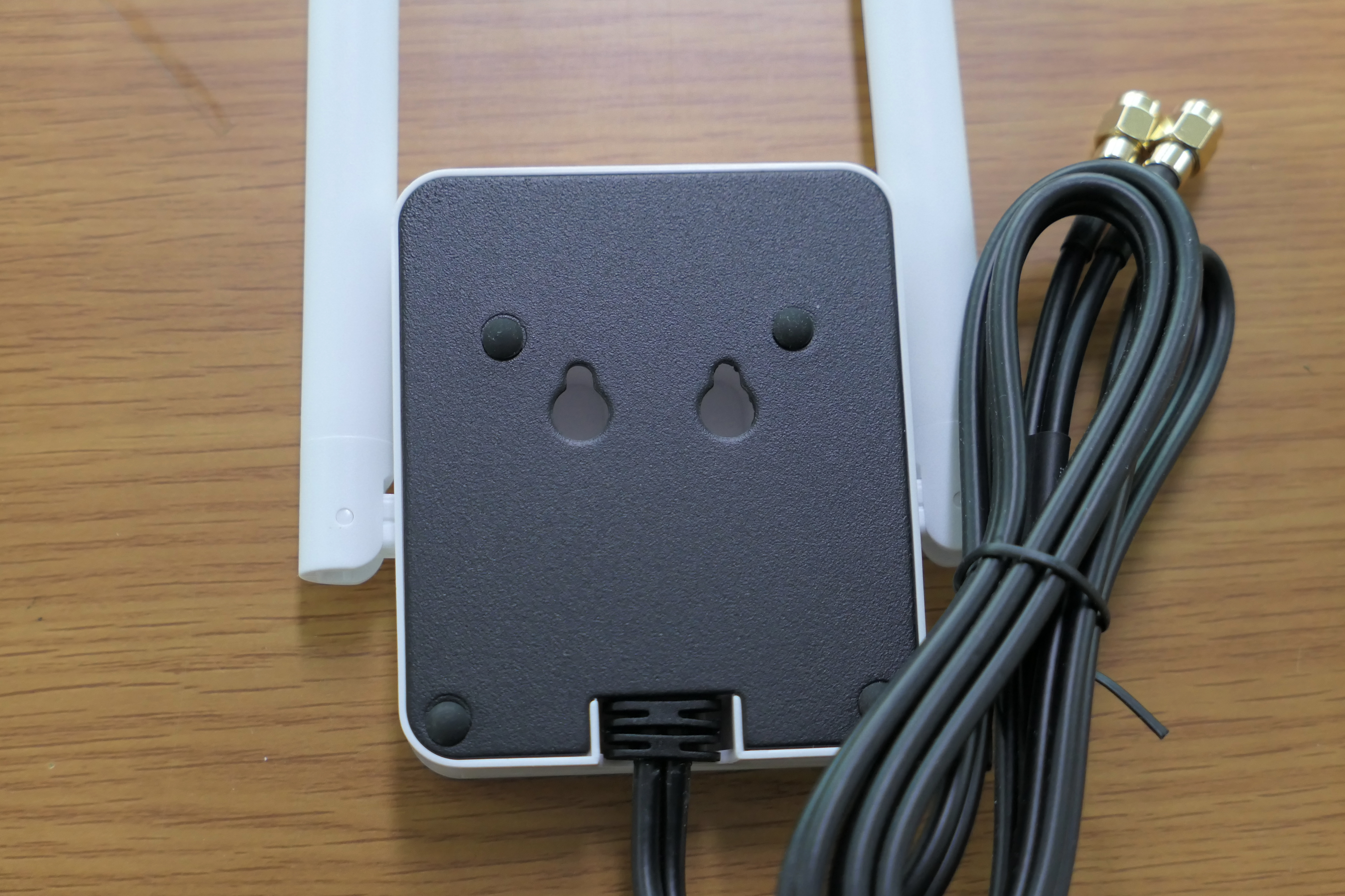 특이사항으로 무선 안테나 뒷면에는 벽에 거치를 위한 홀더와 자석이 내장되어 있습니다. (하단 이미지 참조)
