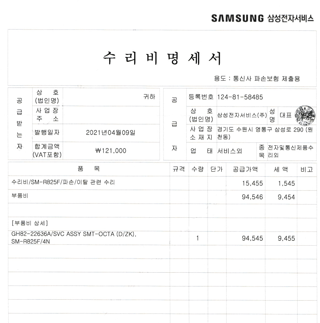 수리비는 공임 포함 121,000원으로 액정과 옆 테두리까지 함께 교환됩니다.