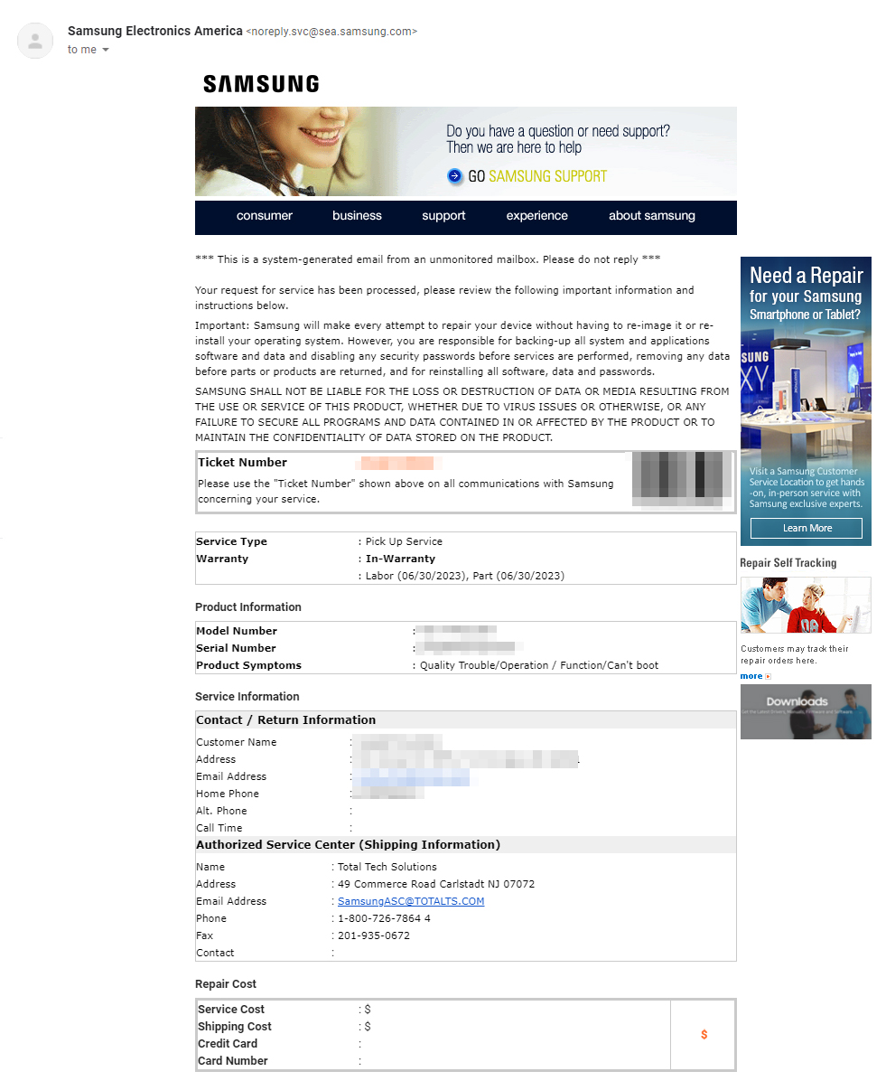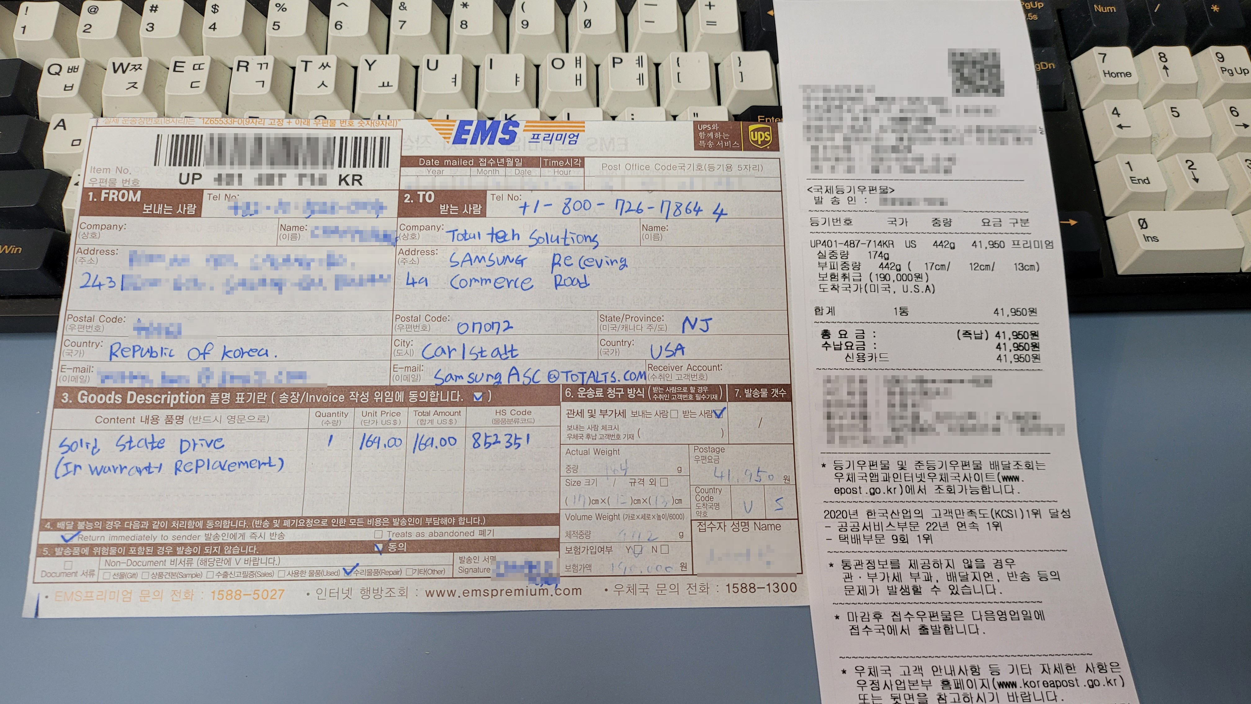 삼성 SSD는 미국에 Total Tech Solutions에서 RMA를 진행하는것 같고 뉴저지에 위치해있네요.