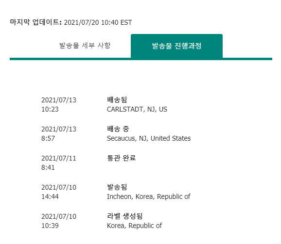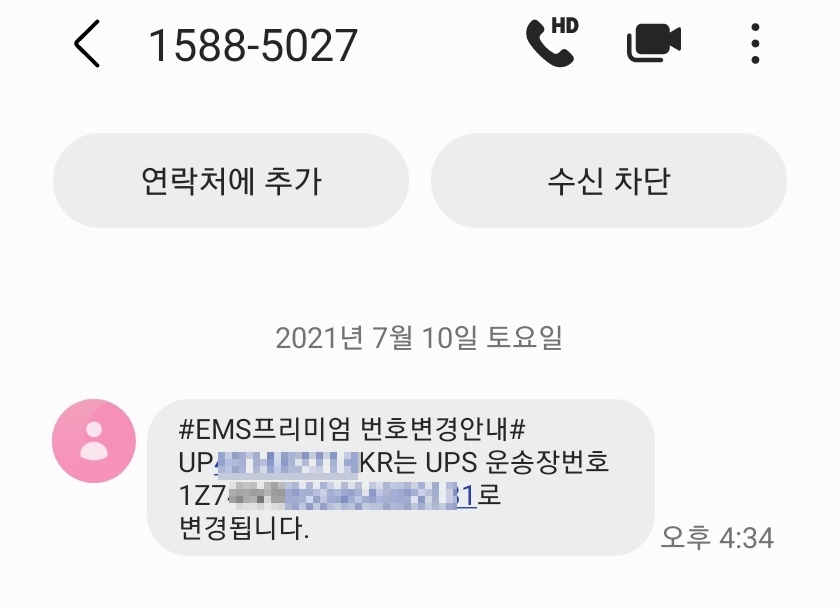 EMS 프리미엄으로 보내고 다음 날 때쯤 UPS 운송장 번호로 변환된 문자를 받을 수 있습니다.