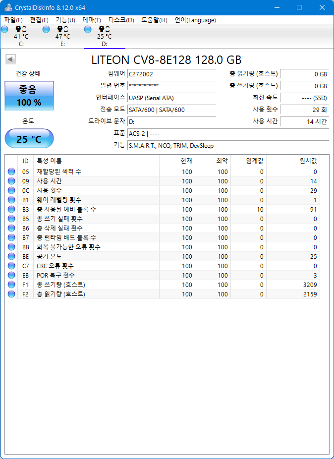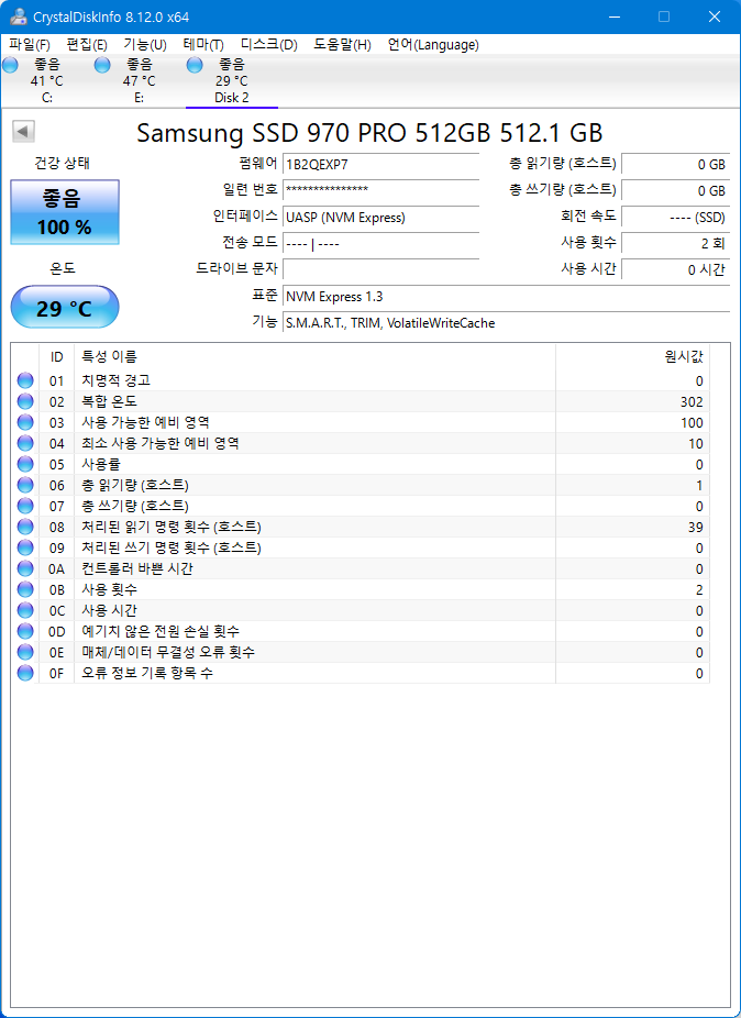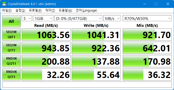 SATA와 마찬가지로 정상적으로 인식되고 작동되는 모습입니다.