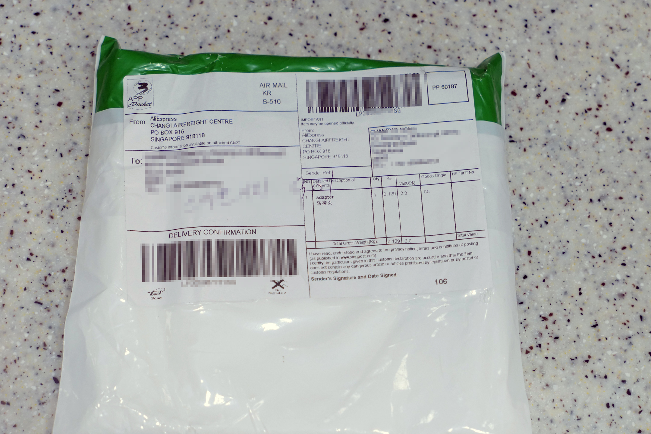 싱가포르 알리익스프레스 물류센터에서 발송되었습니다.