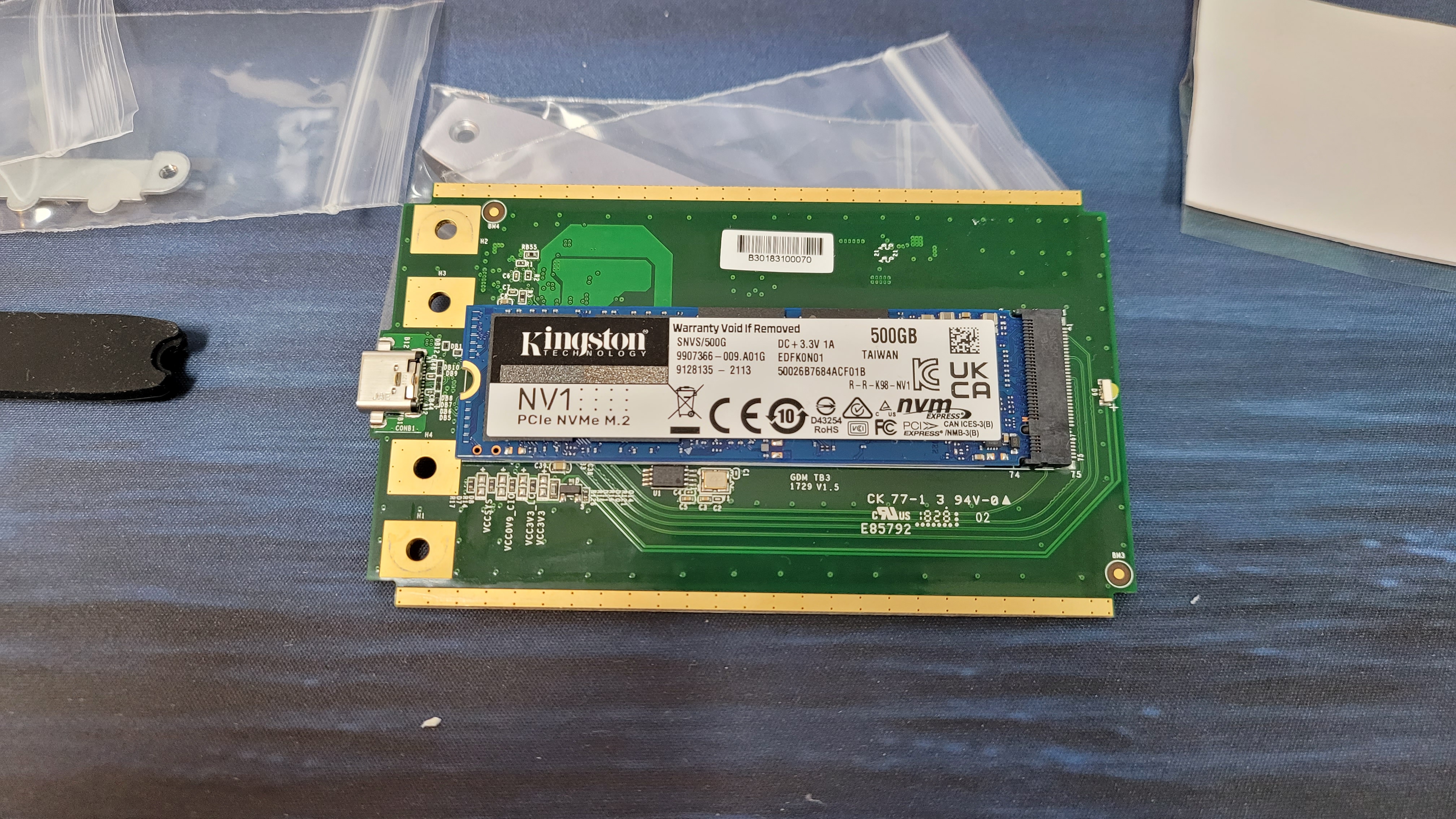 썬더볼트 3 외장 케이스 형태로 사용하고자 Kingston NV1 500GB 제품으로 조합을 해봤습니다.