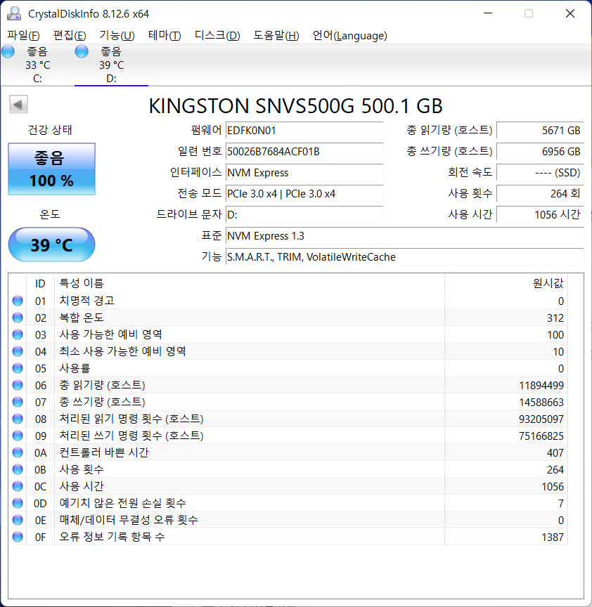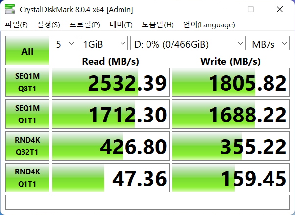 어찌 됐건 그림처럼 Kingston NV1 500GB를 조합하고 테스트하니 썬더볼트 3으로 매우 잘 작동됩니다.