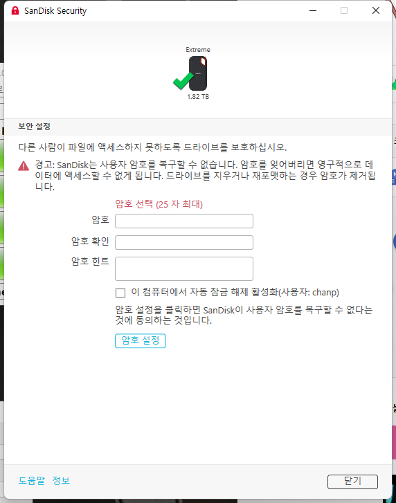 비밀번호 설정을 통해 드라이브를 안전하게 보호할 수 있습니다.