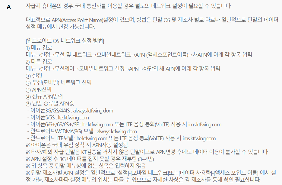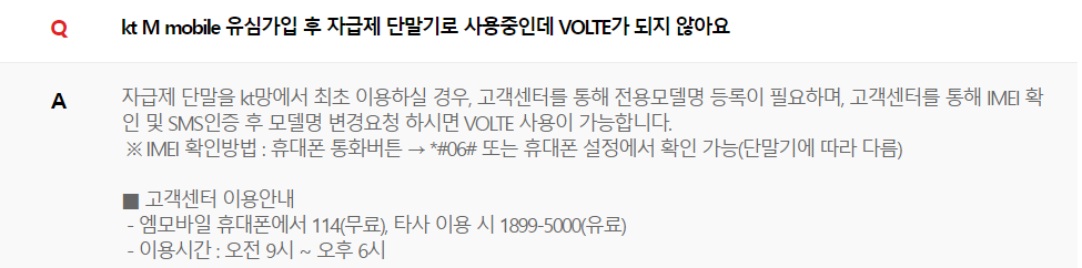 혹시나 싶어서 KT M모바일 Q&A를 찾아보니 아래와같은 내용이 있었습니다.