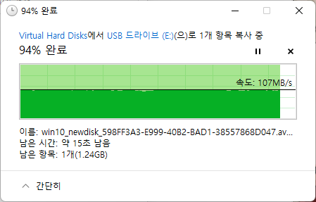 23GB 단일파일 전송에서도 준수한 성능을 보여줍니다.