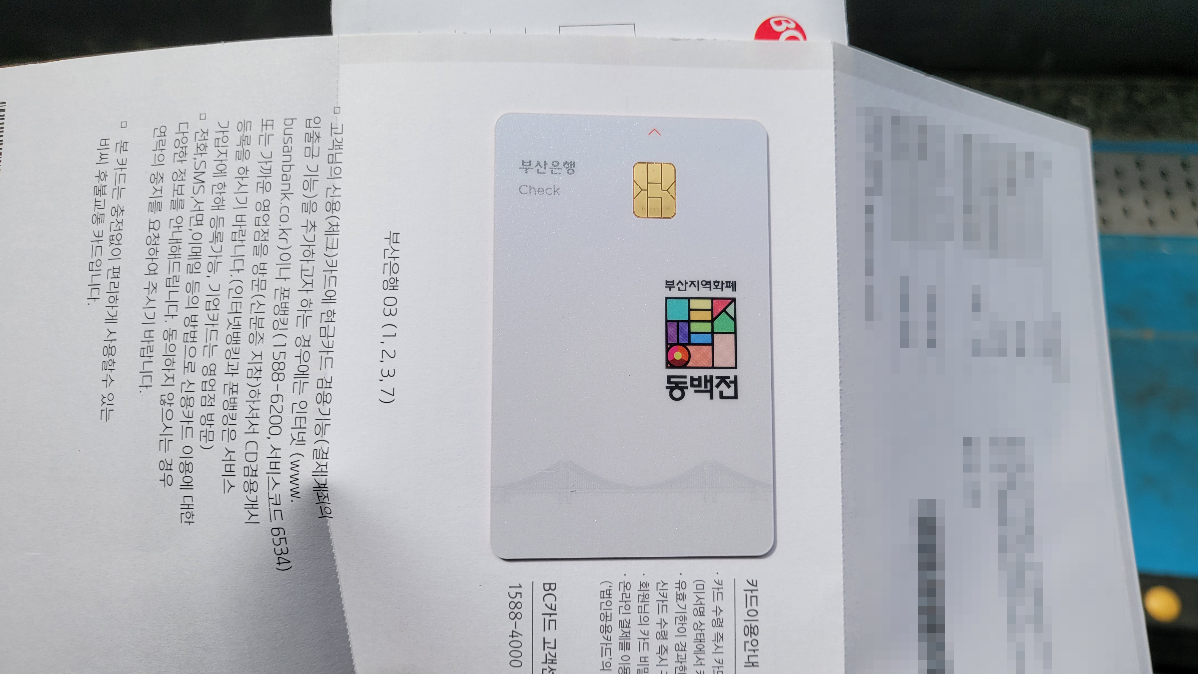 22년 04월 01일 개편된 부산은행발 동백전 카드가 도착했습니다.