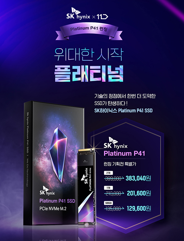 SK하이닉스의 P31 뒤를 이을 PCIe 4.0 기반의 P41 SSD가 5월 11일 오후 11시에 출시되었습니다.