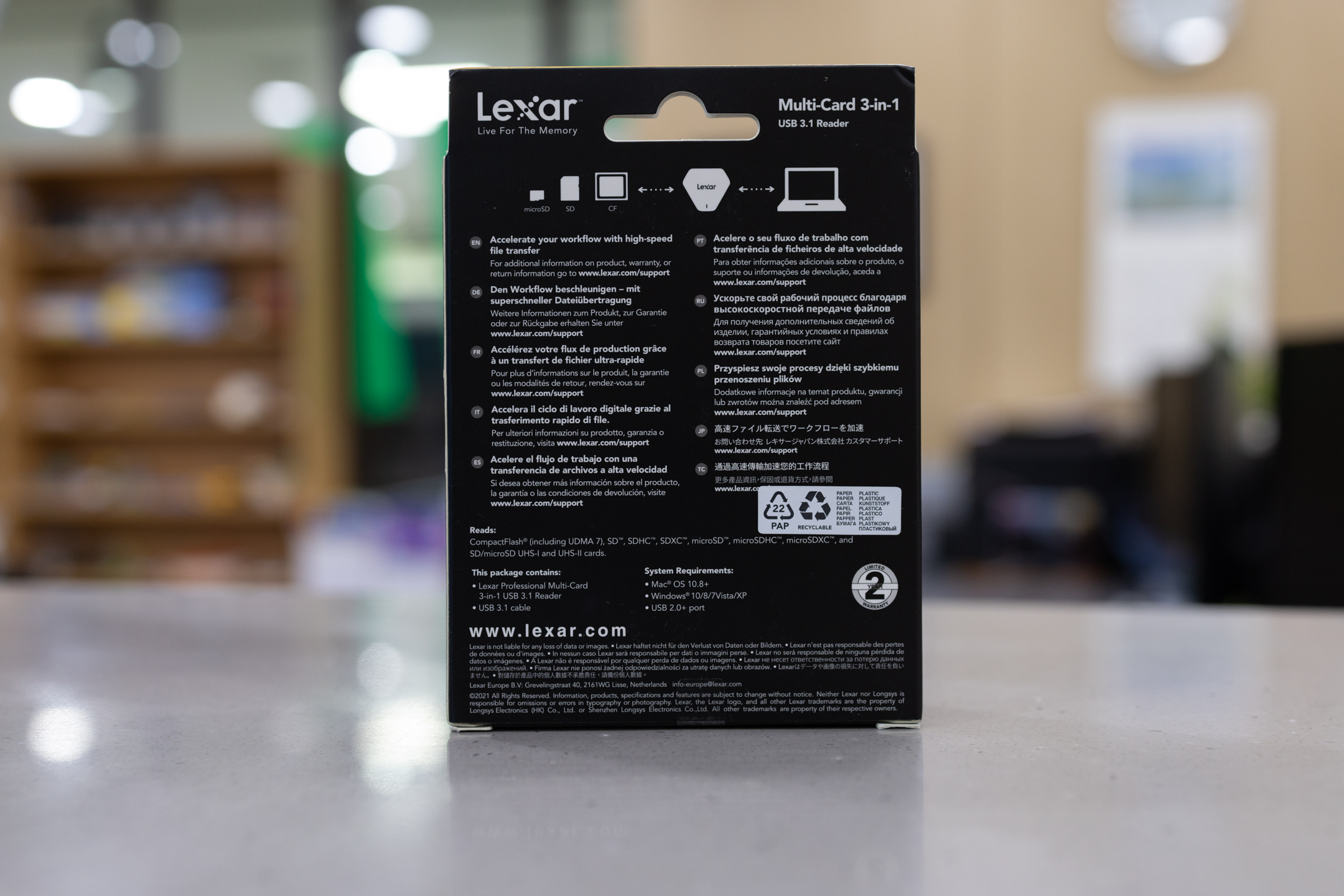 제품명은 Lexar® Professional Multi-Card 3-in-1 USB 3.1 Reader 보증기간은 2년 제한보증으로