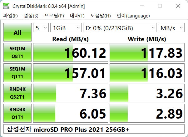 제품 테스트는 삼성전자microSD PRO Plus 2021 256GB로 테스트를 진행했으며