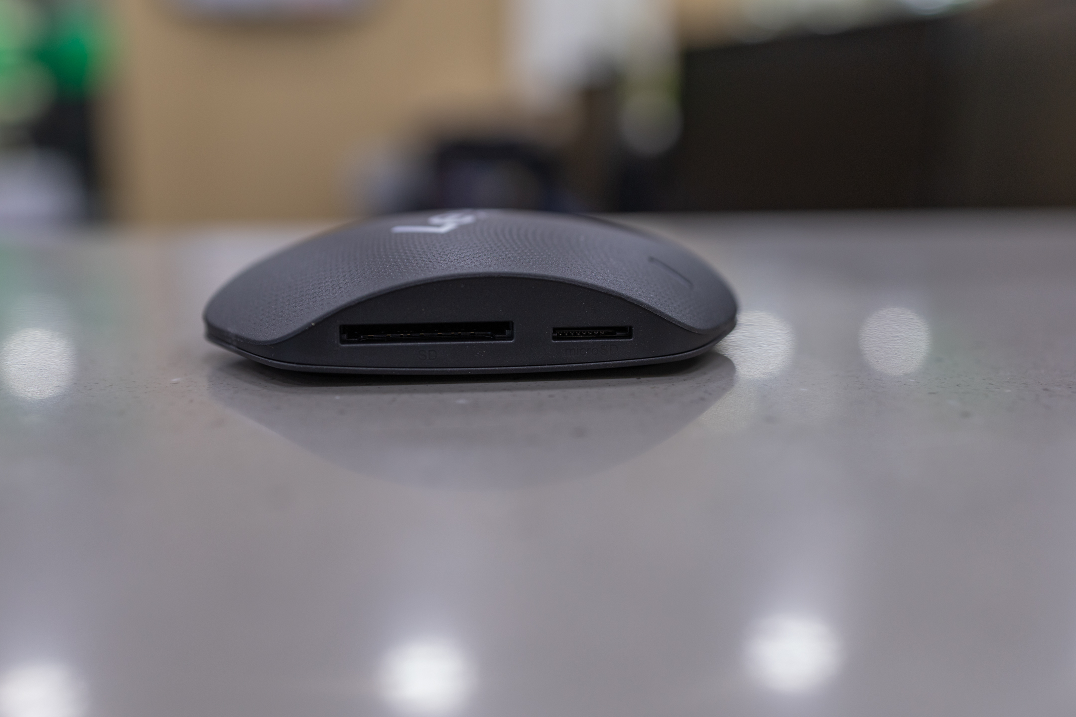 Lexar 로고 정방향 기준 왼쪽에는 SD / microSD를 꼽을 수 있는 슬롯이 있습니다.
