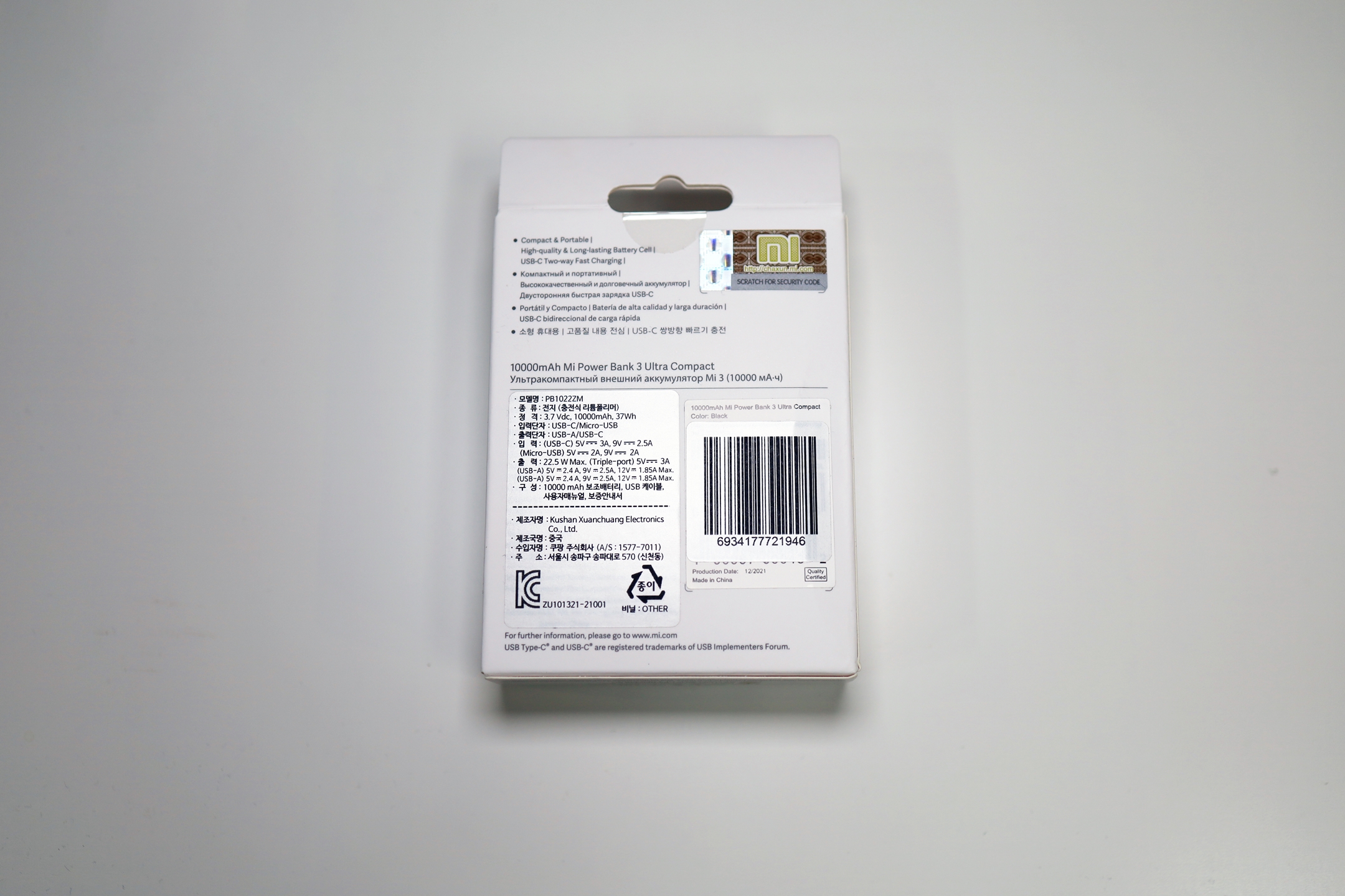 (10000mAh Mi Power Bank3 Ultra Compact) 10,000mAh입니다.