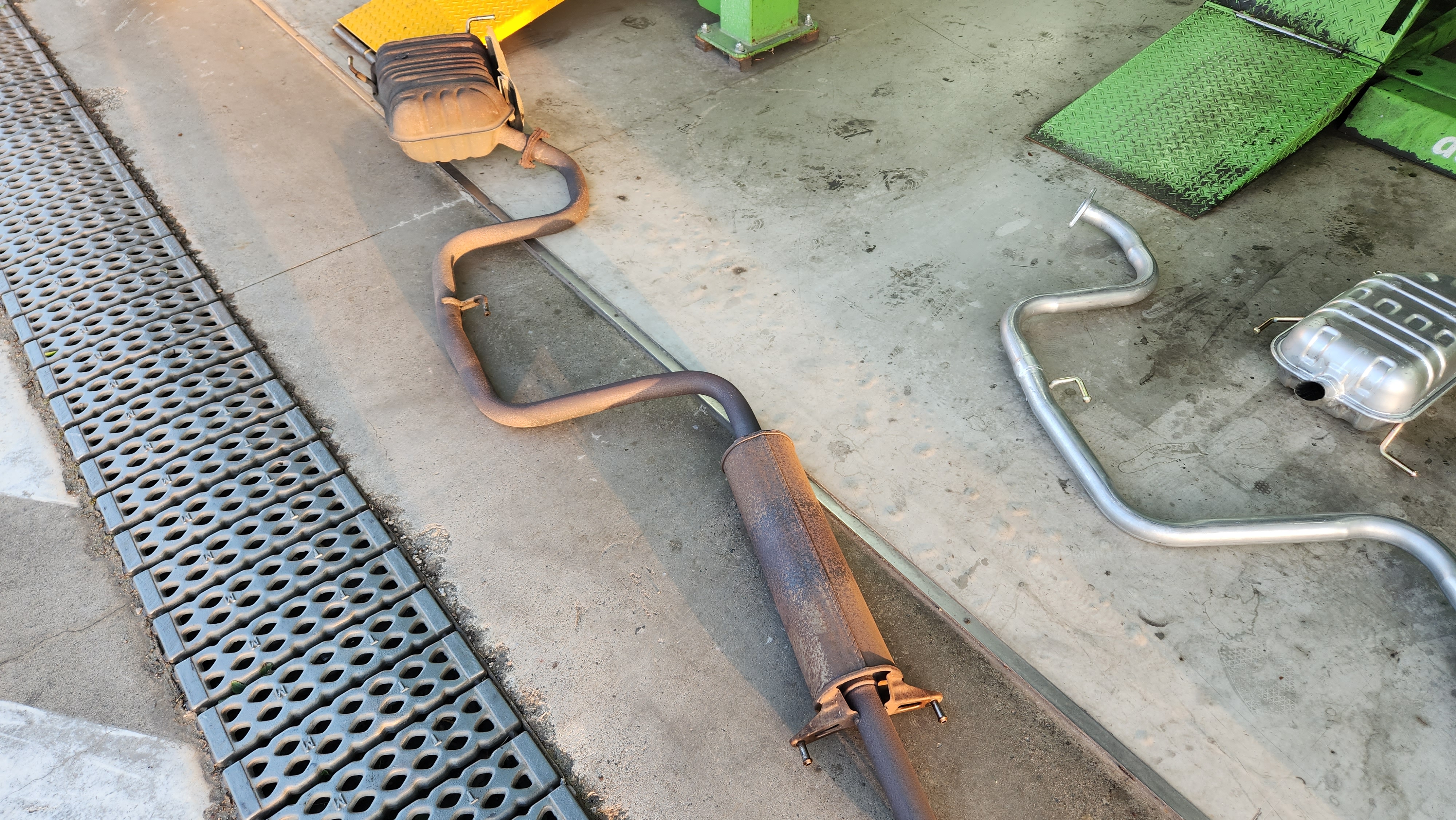 공업사 가서 어제 소음기를 중간부분과 뒷부분까지 교체하였습니다.