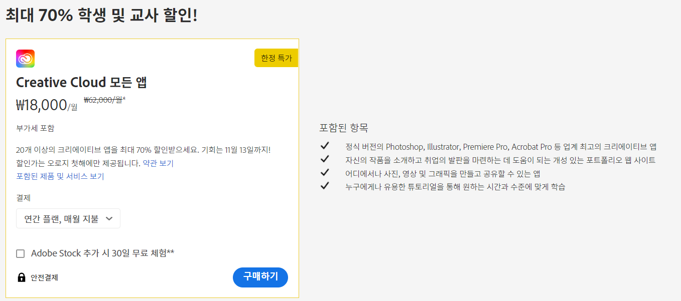 링크: https://www.adobe.com/kr/products/special-offers.html