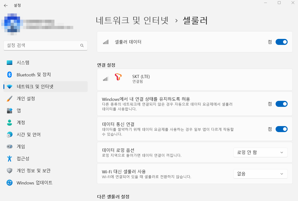 Lenovo T14s 모델을 사용하면서 LTE 모뎀이 탑재된 버전을 사용하고 있습니다.