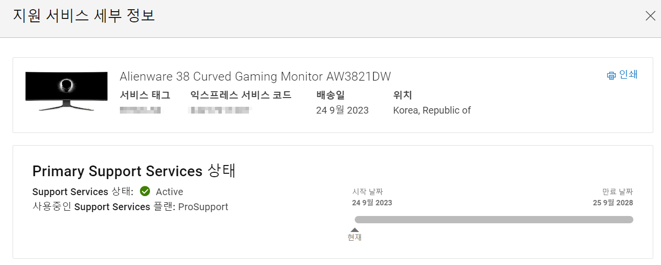 아래는 모니터 구매 당시 보증상태입니다.