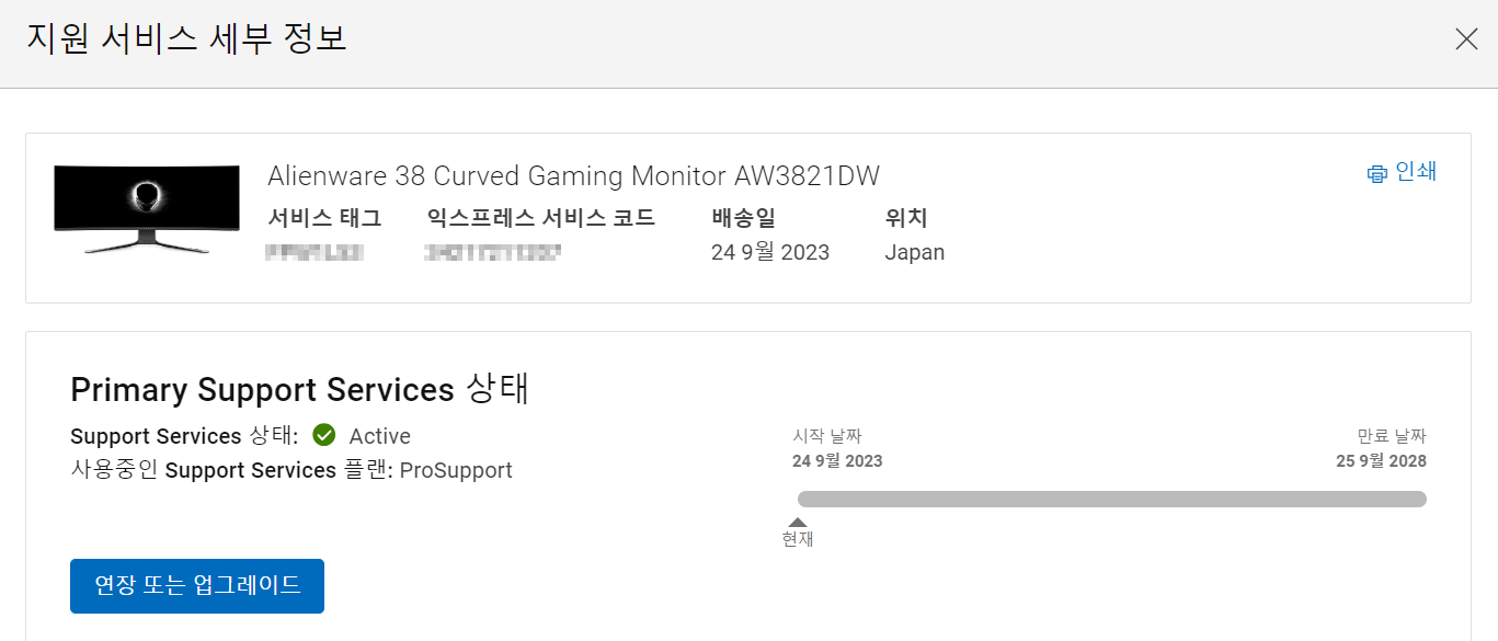 ProSupport 상태에 위치는 일본으로 배송일 기준부터 워런티가 시작됩니다.