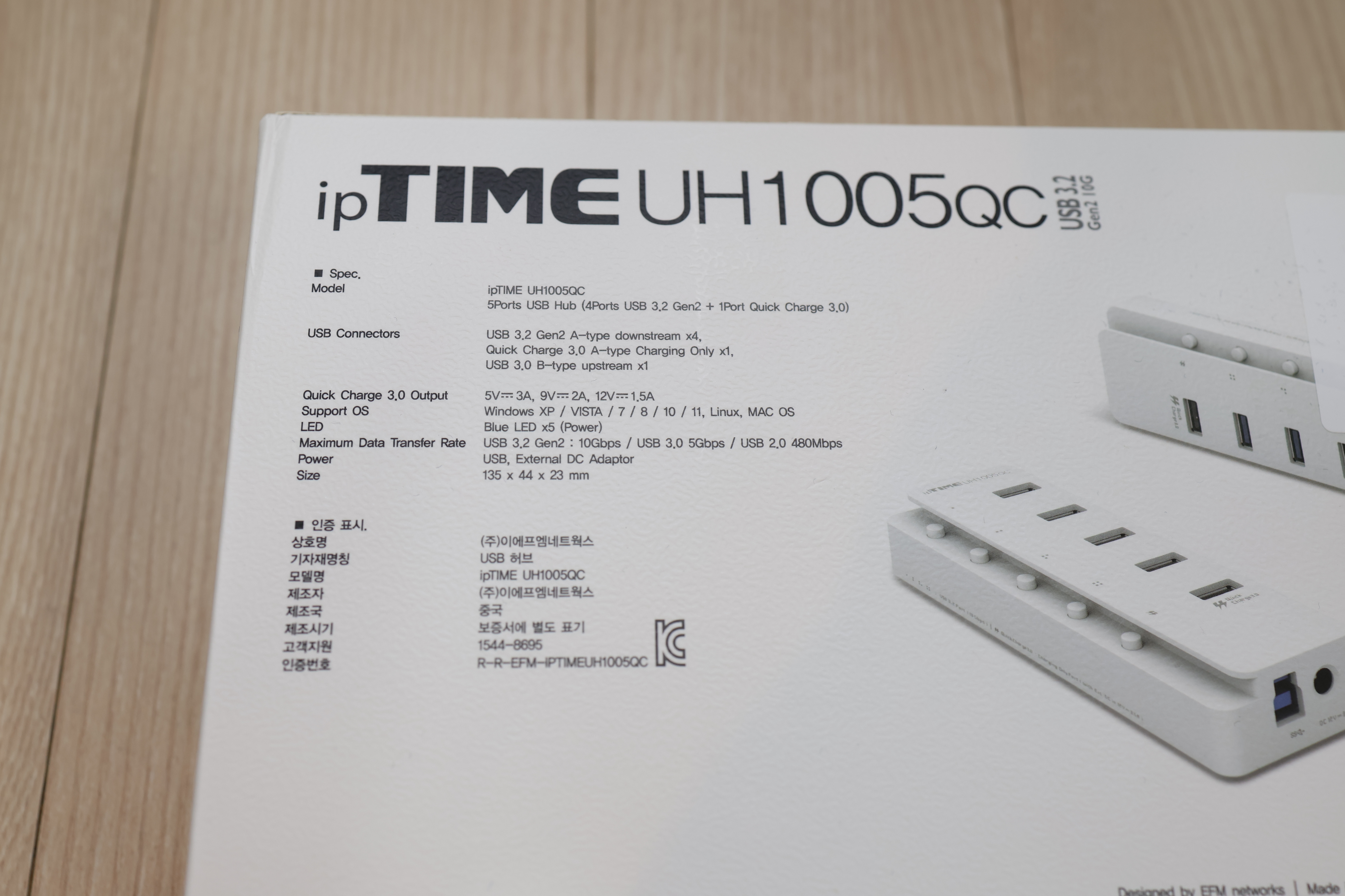 2023년 08월 출시한 ipTIME UH1005QC 5포트 USB 3.2 Gen2 (10Gbps) 허브 제품입니다.