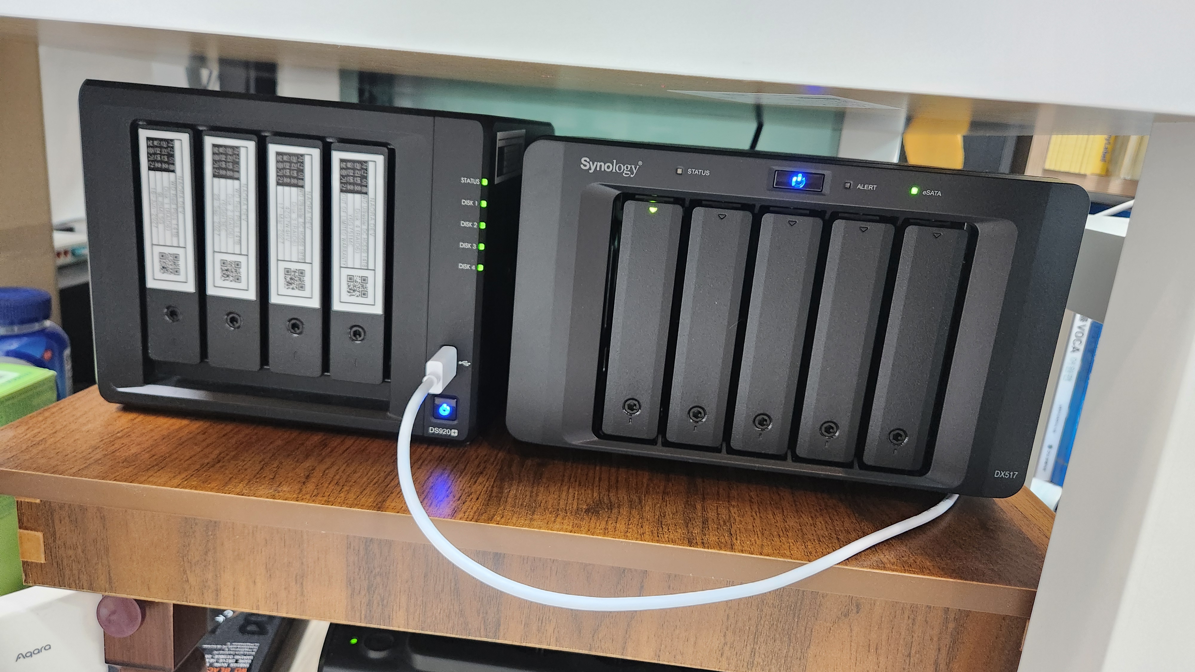 기존에 DS920+에 확장유닛을 붙여 9베이를 완성하니 뭔가 웅장하긴 하네요.