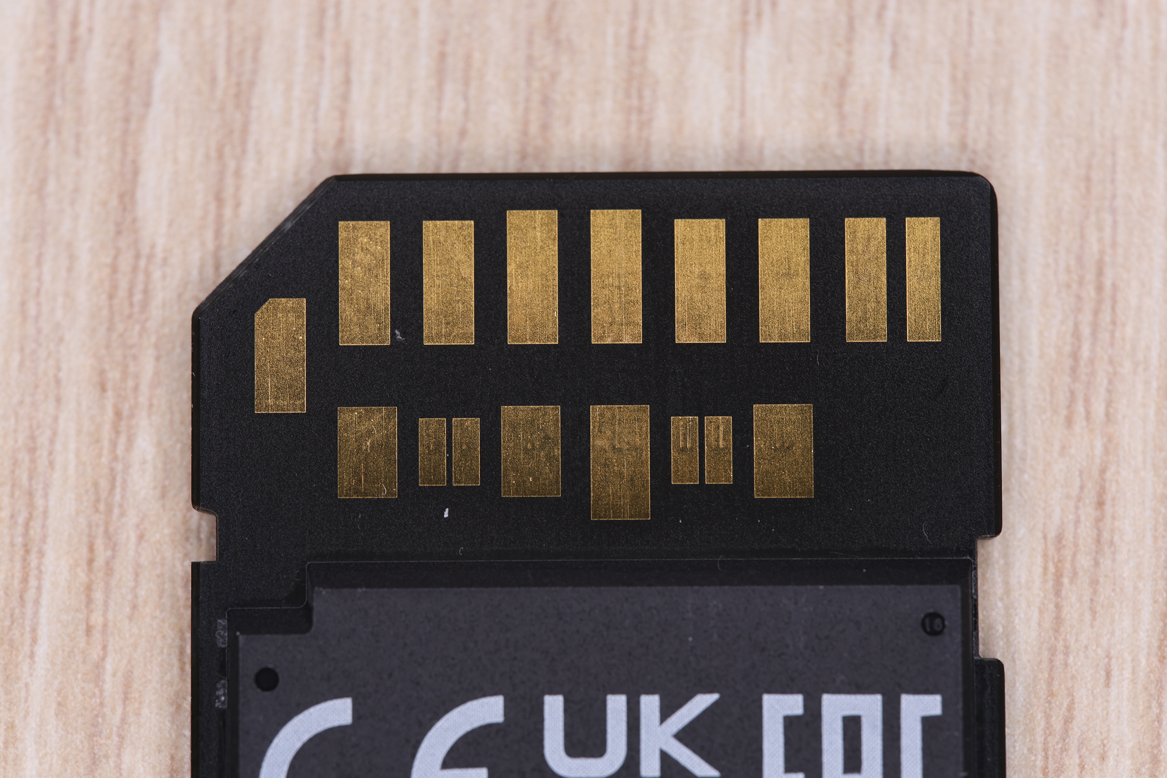 뒷면에는 이 제품의 특징인 지지대 없는 접점과 UHS-II 규격의 점점이 있는 모습입니다.