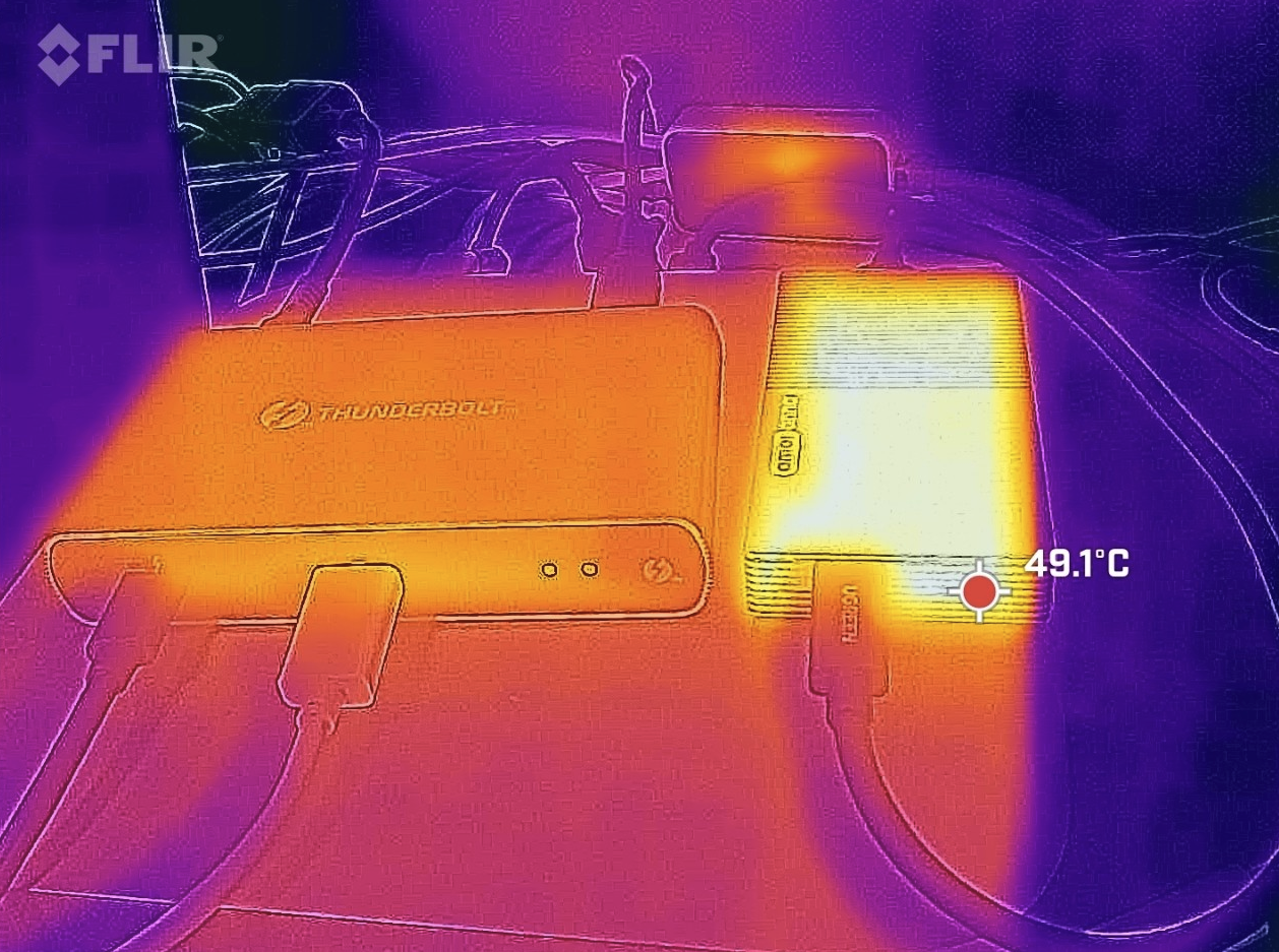 제품 외부 온도는 벤치마크 전 연결 상황에서도 49°C 를 넘기는 모습을 확인할 수 있었습니다.