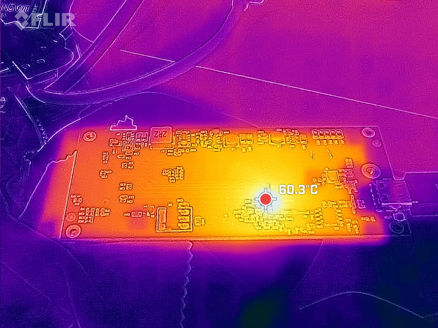 추가로 제품을 분해하고 제품 본체만 연결했을 때 컨트롤러의 온도가60°C 를 넘는 모습을 보여주었습니다.