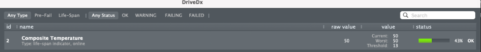 SMART 프로그램상 SSD온도는 50°C를 표시하고 있었습니다.