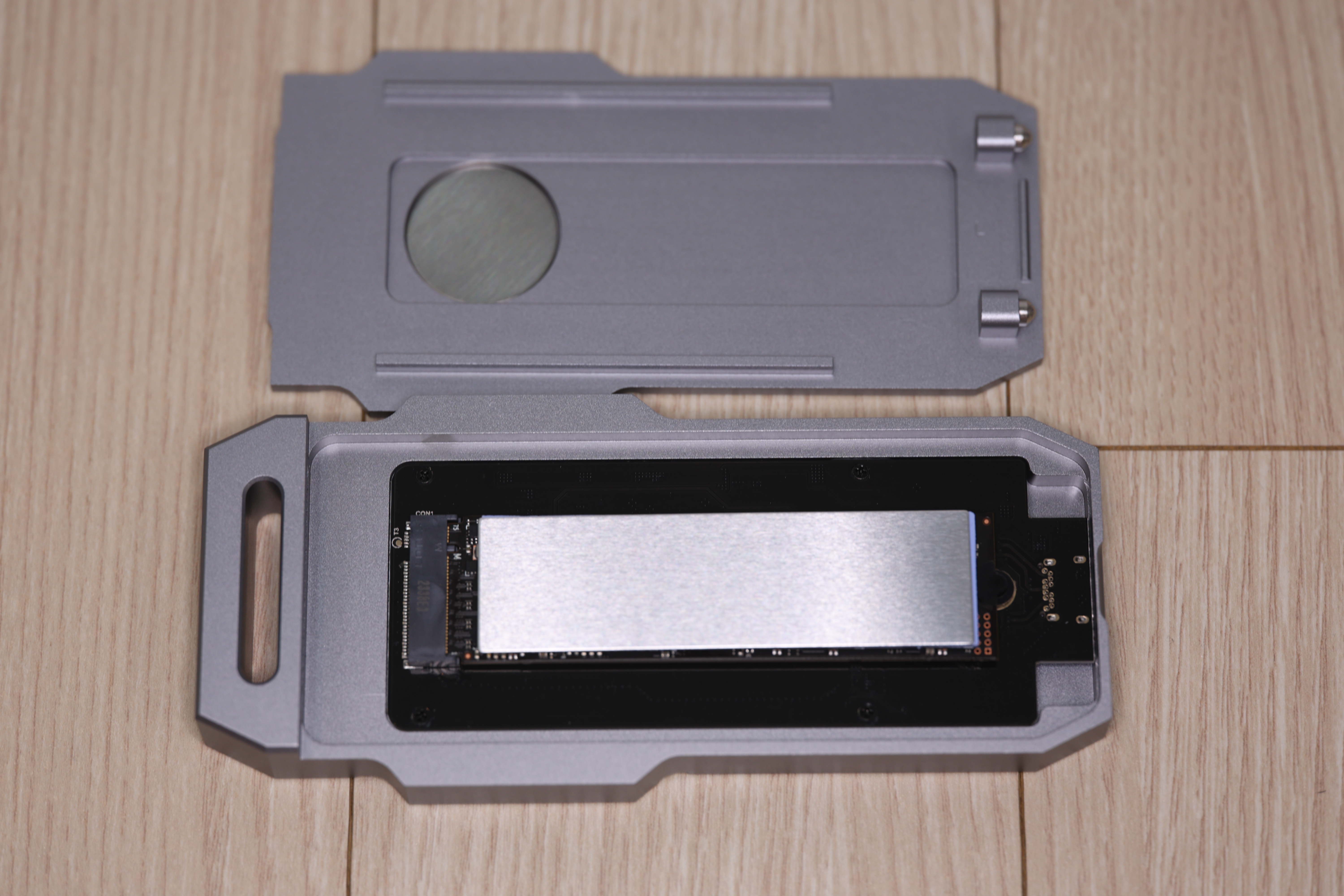 제품은 별도의 툴이 필요없는 툴프리 방식으로 고정되어 있으며 뚜껑을 열면 바로 NVME SSD를 장착할 수 있습니다.