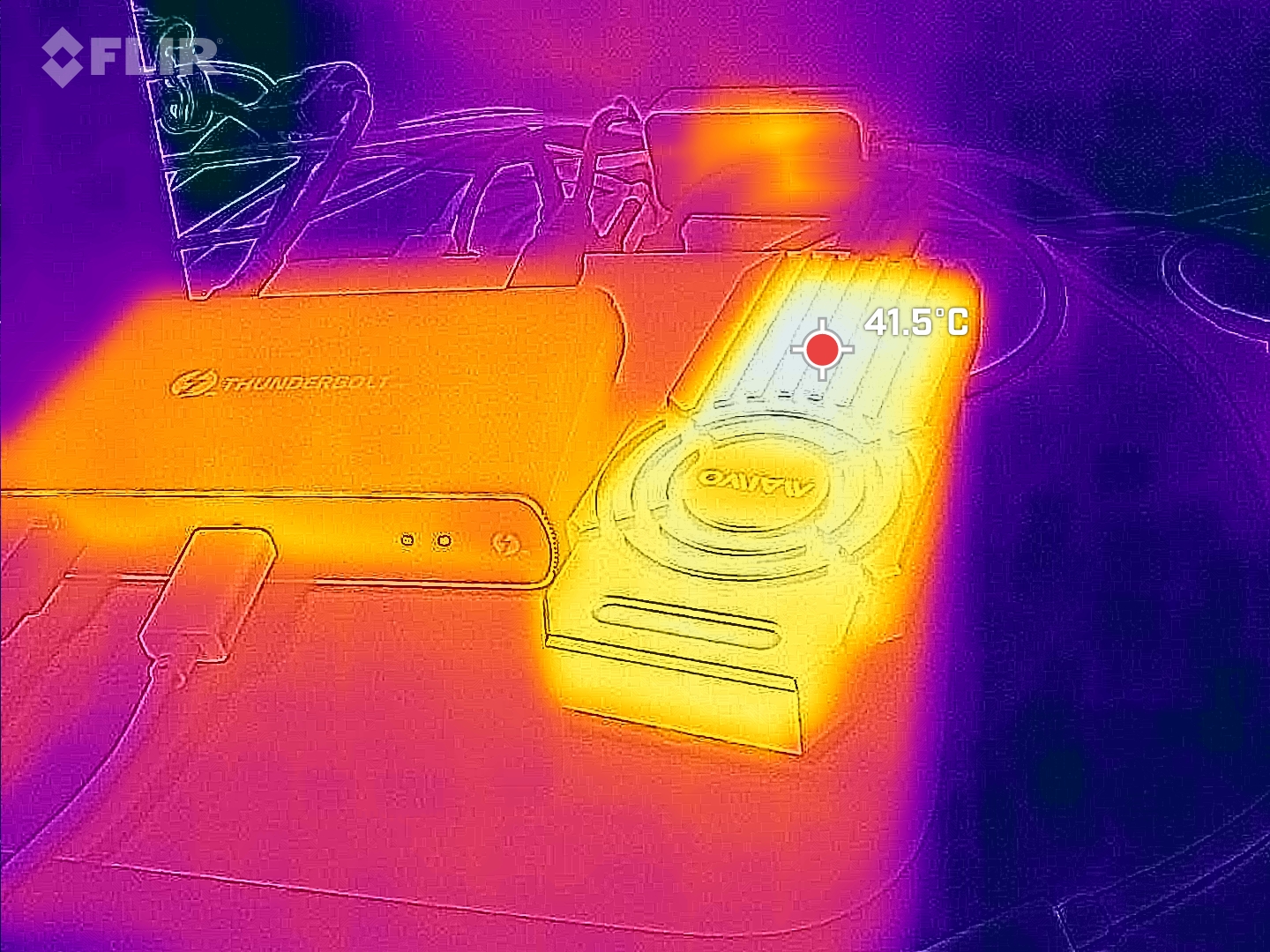 일단 제품을 연결하고 20분 동안 방치한 아이들 상태에서는 컨트롤러가 위치한 부분의 상단부가 41.5°C로 측정되었습니다.