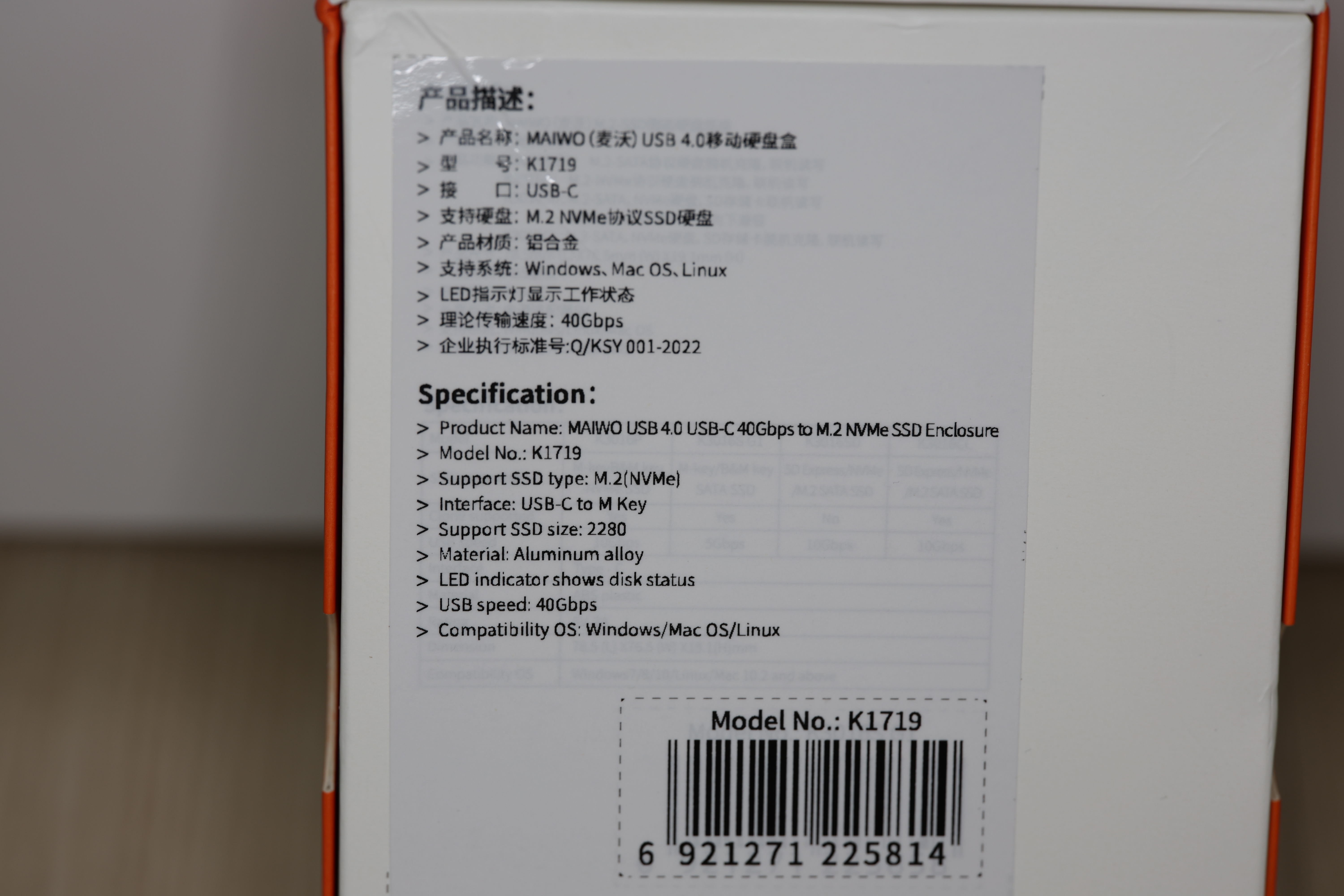 ASM2464PD NVME to USB4 컨트롤러가 탑재된 MAIWO-K1719 인클로저 제품을 구매했습니다.
